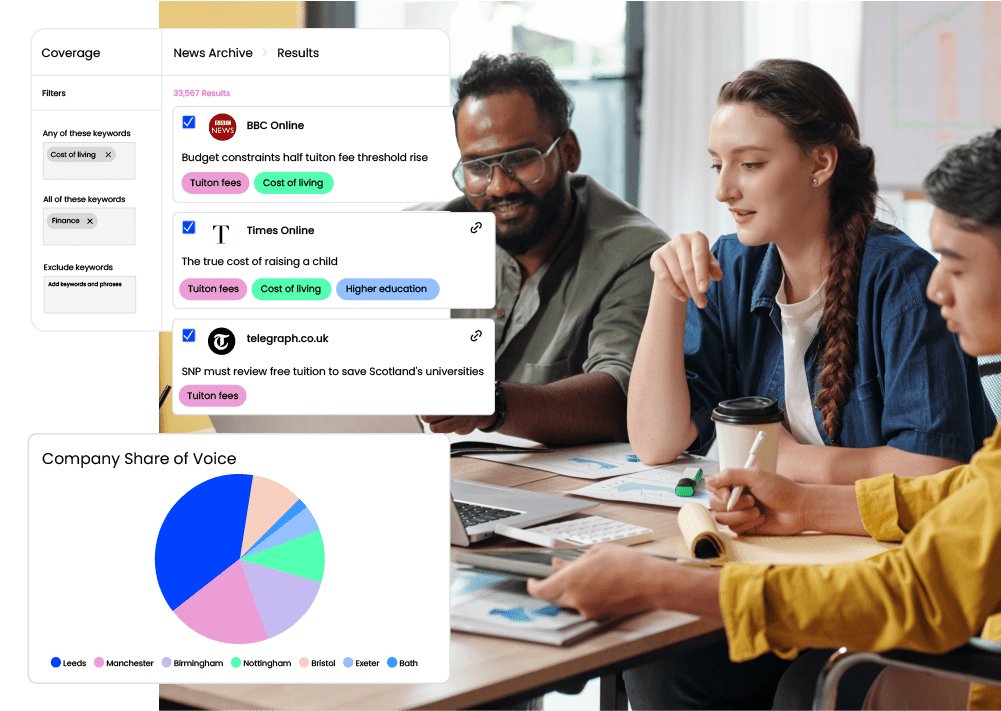 Our print monitoring service lets you analyse traditional press mentions alongside online and broadcast, so you have full visibility of how conversations are emerging and the impact on each medium.